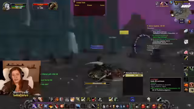 01:50:19Im Anschluss springt die Gruppe in ein neues Gebiet ein und reflektiert über die Titel, die sie lesen, und die damit verbundenen Erwartungen. Es wird angemerkt, dass gestern ein Traum von einem eigenen Tod erwähnt wurde, was heute zu einer gewissen Vorsicht führt. Die Streamer fragen sich, ob sie überhaupt in World of Warcraft weitergehen sollen, und beschließen, ihren eigenen Schicksalsweg zu bestimmen. Dabei sollen sie vorsichtig vorgehen und nicht zu viel Druck auf sich selbst ausüben. Das Gespräch verlagert sich dann zu einer lockeren Erkundungsphase, in der sie verschiedene Monster und Quests abarbeiten wollen, um das Spiel voranzutreiben.