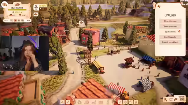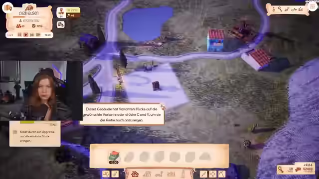 02:59:41Die Streamerin äußert ihre ersten Eindrücke von 'Town to City', beschreibt die Musik als süß und das Spiel als 'cute'. Sie beginnt ein neues Spiel und krempelt die Ärmel hoch, um etwas Schönes zu bauen, inspiriert von früheren Bauprojekten in Anno. Der Fokus liegt zunächst auf dem Bau von drei Häusern, die durch eine Straße mit dem Bahnhof verbunden sind. Es wird über die Platzierung der Häuser diskutiert, wobei darauf geachtet wird, dass sie nicht direkt vor dem Bahnhof stehen. Die Streamerin experimentiert mit verschiedenen Straßenarten und Pinselgrößen, um die Gebäude zu verbinden, und die ersten Familien ziehen ein. Anschließend werden Marktstände für Geflügel und Käse platziert, und die ersten Arbeitskräfte werden eingestellt, um die Geschäfte zu betreiben. Es wird eine Lagerhalle gebaut, um die Versorgung der Gewerbegebäude sicherzustellen.