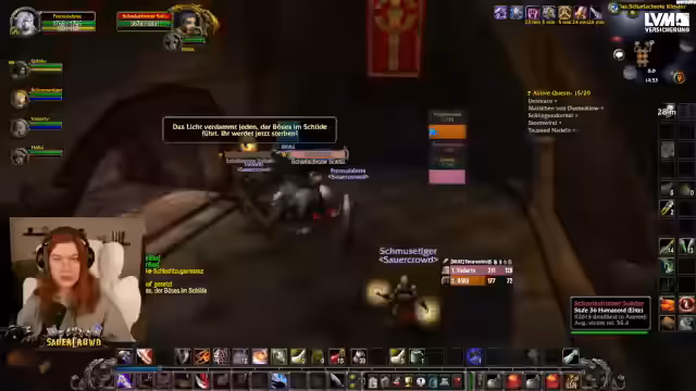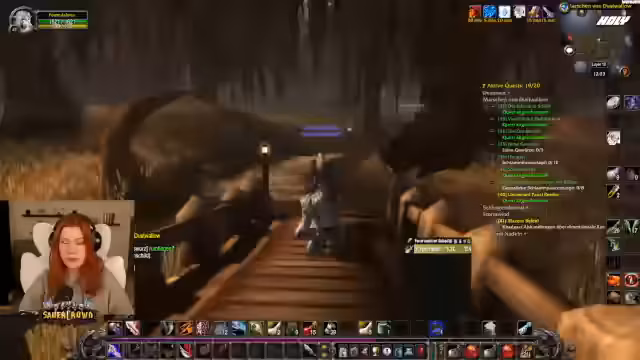 01:53:27Nachdem alle Quests abgegeben wurden, richtet sich die gesamte Aufmerksamkeit auf den bevorstehenden Dungeon 'Hügel von Klingendorf'. Die Vorbereitung ist voll im Gange und die Streamerin ist bereit, mit dem Team einzusteigen. Auf dem Weg wird sie noch einmal durch Sturmwind laufen und unterbricht das Gameplay kurz, um den Chat auf eine private Verpflichtation hinzuweisen, die sie später hat, was für eine gewisse Unruhe sorgt.