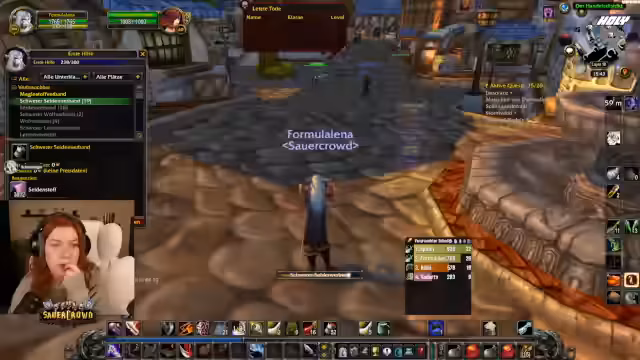 01:29:15Nach dem Schließkistentüfteln werden weitere Quests erledigt, wie die 'Vermissten Diplomaten'-Quest-Reihe in der Nähe von Booty Bay. Es folgen Planungen für weitere Dungeons wie den Hügel von Stromgarde, wobei nach weiteren Spielern in der Passstufe gesucht wird. Parallel wird über das generelle Leveln und die Mount-Beschaffung philosophiert, wobei betont wird, dass der Erhalt eines Mounts den Fortschritt im Spiel erheblich beschleunigt, auch wenn die reine Erfahrungspunktezahl für das nächste Level steigt.