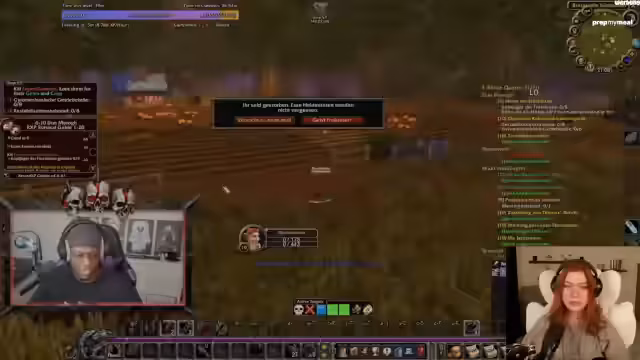 01:36:41Beim Erledigen von Questen stößt die Streamerin auf die Quest 'Stinkys Flucht', die sie direkt angenommen hat. Gleichzeitig wird jemandem in der Nähe geholfen, eine andere Diplomaten-Quest zu beenden. Nach Abschluss dieser Tätigkeiten geht es zurück zu der Stinky-Quest, eine Sonderquest, die einen eigenen Kampf beinhaltet. Währenddessen wird im Chat nach einem Dungeonpartner gesucht, Holla signalisiert Interesse und eine mögliche Gruppe formiert sich.