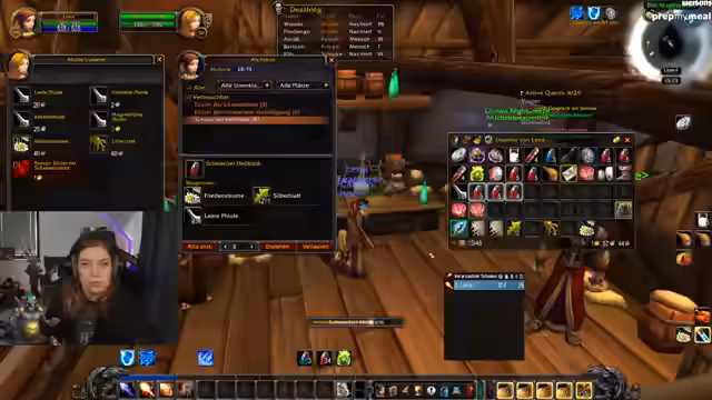 05:09:52Der Streamer beginnt mit einer Quest, die problematisch angezeigt wird, sodass sie nicht angenommen werden kann, obwohl der Gastwirt im Gebäude steht. Es kommt zu einer Diskussion mit Bink über die Quest, während zwischendurch blaue Items droppen, die jedoch unbrauchbar sind und verschenkt werden. Ein blauer Zauberstab wird erwähnt, der positive Reaktionen auslöst, aber auch Fragen aufwirft, ob er für andere Spieler nützlich wäre, während Handschuhe für den PC gewünscht werden.