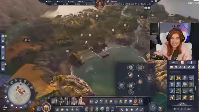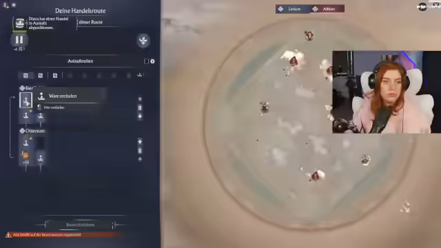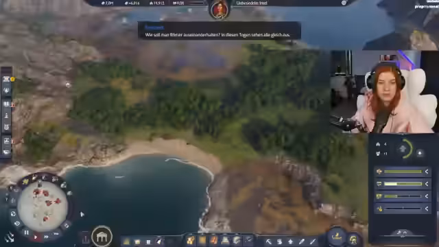 02:45:28Die Streamerin plant, die Insel für Handel zu optimieren, indem sie eine Exportroute für Wein und Aspik einrichtet. Dazu wird ein neues Schiff konstruiert, das diese Waren transportieren soll. Es wird erkannt, dass die Insel als Goldinsel optimal geeignet wäre, wenn nicht Merkur als Schutzgottheit gewählt worden wäre. Um logistische Probleme zu umgehen, wird entschieden, Beton direkt auf der Insel zu produzieren, anstatt ihn aus der weit entfernten Region Latium zu importieren.