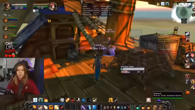 01:43:08Die Streamerin navigiert durch die Stadt Booty Bay, um dort Questen abzugeben. Das Gebiet stellt eine Herausforderung dar, da sie hier Zombies angegriffen und knapp einem Kampf entkommen ist. Neben dem Gameplay unterhält sie sich ausführlich mit dem Chat über verschiedene WoW-Städte und ihre persönlichen Favoriten, wobei Sturmwind und Dalaran am beliebtesten sind. Auch die Thematik Rock am Ring wird angesprochen, mit Spekulationen über mögliche Auftritte von Bands wie Rise Against oder den Toten Hosen.
