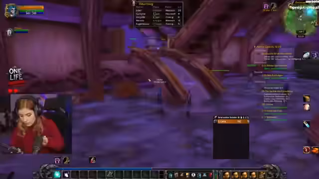 08:29:01Die Streamerin beklagt sich über einen unglücklichen Tod im Spiel und darüber, dass ein Patch viele Dinge zerstört hat. Dies führt zu einer spontanen Entscheidung, die Klasse zu wechseln, von einem Paladin zu einem Nachtelfenjäger, um frische Motivation zu finden und einen Neustart zu wagen.