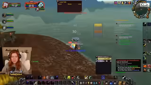 00:06:59Nachdem die Streamerin über das Real-Life-Hardcore-Gaming gesprochen hat, leitet sie zur Hauptthemas über: die Analyse von Todesclips aus der WoW-Hardcore-Community. Sie kommentiert verschiedene Clips, in denen Spieler, oft durch Fehleinschätzungen wie das Angriffen von orangefarbenen Monstern alleine, sterben. Eine häufige Ursache ist auch die Unaufmerksamkeit von Gruppenmitgliedern, die in der Nähe stehende Spieler nicht heilen, was zu vermeidbaren Toden führt.