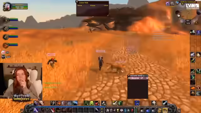 00:21:34Während des Streams werden zahlreiche Todesfälle im eigenen Spiel gezeigt, hauptsächlich durch unvorsichtiges Handeln wie das Laufen feindlicher Camps oder das Ignorieren von PvP-Regeln. Ein zentrales Thema ist das PvP-Flagging, das durch den Kampf mit gegnerischen Wachen aktiviert wird und den Spieler für fünf Minuten angreifbar macht. Eine Szene zeigt, wie dies zu einem unvorsichtigen und tödlichen Kontakt mit feindlichen Spielern führt. Die Streamerin betont, dass besonders Priester ihr Machtwort-Schild zur Verteidigung nutzen sollten, was viele jedoch in Paniksituationen vergessen.