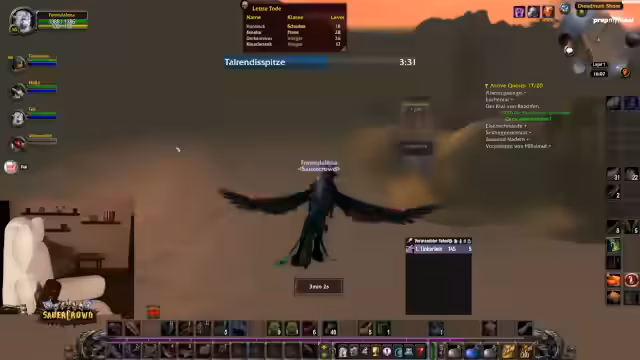 03:33:46Ein kritischer PVP-Vorfall ereignet sich, als ein Spieler von der Horde ausgelockt wird, was zu einem PvP-Flag und einem schrecklichen Kampf führt, bei dem er fast stirbt. Die Streamerin berichtet über den Notfallplan, der ein schnelles Ausloggen und das Porten durch einen Teamkollegen beinhaltet. Die Gruppe diskutiert die Mechanik von PvP-Flags und die Risiken von gefährlichen Orten wie Aufzügen, die als tödlicher eingestuft werden als einige Dungeons.