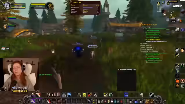 04:42:42Der Fokus liegt auf der Verwaltung des Inventars und dem Fortschritt von Quests. Die Streamerin beschwert sich über zu wenig Platz im Quest-Log und muss mehrere Gegenstände löschen. Eine zentrale Quest ist die Suche nach Treschalas Anhänger, der jedoch scheinbar nur als random Drop von normalen Mobs erscheint und nicht direkt lootbar ist. Parallel dazu wird die Escort-Quest 'Die Sterblichkeit schwindet' begonnen, bei der die Gruppe einen NPC beschützen muss. Diese Quest scheitert jedoch, weil die Streamerin sich zu weit vom Ziel entfernte, was zur Frustration führt. Eine weitere, wiederkehrende Aufgabe ist die 'Schnüffelnase'-Quest, bei der ein Tier losgeschickt werden muss, um Gegenstände zu suchen, die dann von der Gruppe gelootet werden müssen. Es stellt sich heraus, dass man diese Quest nicht überall, sondern nur in bestimmten Gebieten durchführen kann.