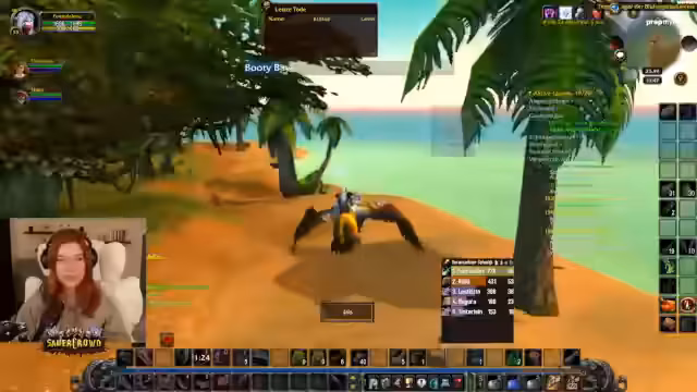 03:13:17Die Streamerin muss zur Booty Bay fliegen, um dort eine Quest abzugeben. Die Gruppe koordiniert ihre Route: Sie reisen mit dem Schiff von Bucht der Frösche nach Ratchet und laufen dann nach Süden. Während der Reise werden weitere Quests wie 'Blauknollen' besprochen und angenommen. Die Streamerin erklärt die Mechanik der Quest, die Items im Dungeon 'Kral der Klingenhauer' erfordert. Die Szene zeigt die räumliche Orientierung im Spiel und die Notwendigkeit, mehrere Quests gleichzeitig zu managen.