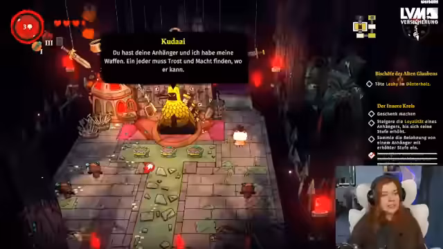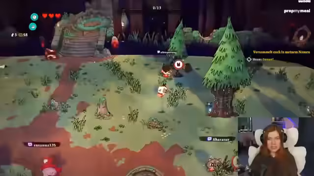 01:11:40Zu Beginn des Streamings konzentriert sich der Streamer auf das Erkunden der Spielwelt und das Sammeln von Ressourcen. Er untersucht verschiedene Kisten und Wege, um Steine, Holz und Münzen zu finden, die für den Aufbau seines Kultes notwendig sind. Er entscheidet sich, zuerst Ressourcen zu sammeln und stellt fest, dass er Knochen für anstehende Rituale benötigt. Während der Erkundung entdeckt er auch eine Karte, die allen auf dem Bildschirm Schaden zufügt, und stellt fest, dass der Bosskampf nun näher rückt.