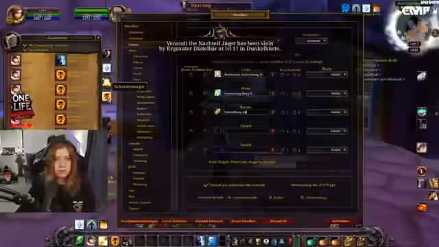06:25:55Es wird deutlich, dass die Streamerin und ihr Chat aktiv miteinander interagieren. Während sie sich noch in Hilsbrand aufhält, beginnt sie bereits Ehrenfreunde zu grüßen und Taschen zu lernen. Sie wirkt dankbar für die Unterstützung durch andere Spieler, wie z.B. Deuker, und zeigt sich flexibel in der Koordination. Als Dinox unerwartet offline geht, beginnt sie sofort mit einer neuen Hilfe. Sie gibt auch hilfreiche Tipps wie das Leatrix-Addon für Flugzeiten, was den kooperativen Charakter des Streams unterstreicht.