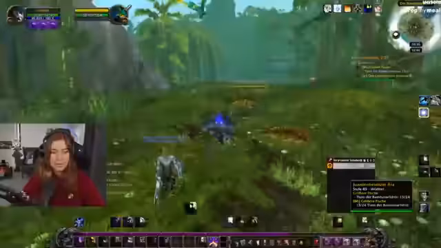 04:44:59Nach der Aktivierung der Spielzeit wird das Leveln im Gebiet der Jadewälder aufgenommen. Die Streamerin erkundet die Zone, nutzt Flugpunkte und macht sich mit der Queststruktur vertraut. Sie stellt fest, dass das Gebiet optisch ansprechend ist und das Leveln relativ flott verläuft. Auch technische Probleme, wie die Serverlast und häufige Unterbrechungen durch Respawn-Probleme oder unvollständig ladende Zauber, werden angesprochen und als frustrierend empfunden.