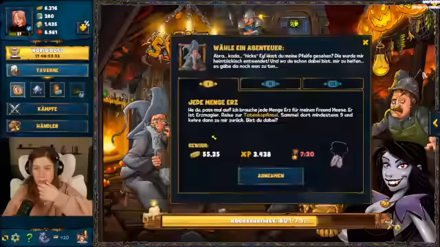 04:11:0604:11:06 Der wär lecker gewesen. Was haben wir noch für einen? Zwölf in... rotes Magier-Shit. Langsam Hunger, Chat. Ich hab heute nichts präpariert. Ja, das ist ein großes Oje. Optionen. Bestellen. Nein, Spaß. Boah, ich schieß ja so grüne Giftsblitze mit dem Zauberstab. Ist auch cool. Jetzt hatte ich eine Denkpause und ein Product Placement für Crap Mamir. Ja, das würde ich halt... Also, das ist für heute Abend geplant. Tatsächlich.