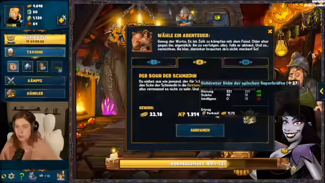 05:04:52 So, der Char ist auch wieder fertig. Oh, was? Gehörnte Helm der epischen Superkräfte mit plus 28 Stärke und 90 Rüstung. Jawohl. Hier gibt es auch nichts anderes. Das brauchen wir. Das ist ja mega. Perfekt. So, wir sind auch hier angekommen, Chat. Easy.