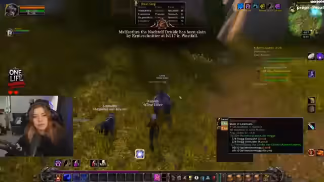 04:24:29Die Streamerin konzentriert sich auf das Ableisten von Quests in Westfall. Sie bittet den Chat, auf den Tod von Lady of Fails aufmerksam zu machen, was die Dynamik der Gilde zeigt. Sie jagt Steinenzähne für eine Quest und interagiert mit ihrem Hunter-Pet 'Schnuffel', dem sie geröstetes Eberfleisch gibt. Sie analysiert Drops wie einen Bierkrug, den sie nutzbar findet. Die Entscheidungen über Loot und Questprioritäten werden strategisch getroffen.