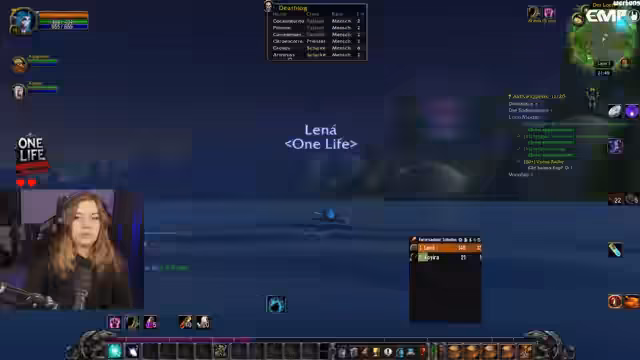 08:47:04Es kommt eine Diskussion über die Wahl des Servers für die kommende MOP-Erweiterung auf. Der deutsche Server Everlook wird genannt, ist aber ein DKP-Server. Als Alternative wird Lakeshire genannt, das aussterbend sei, aber keine DKP-Verfahren nutzt. Die Streamerin ruft die Chat auf, den Namen des Servers zu wiederholen. Nebenbei werden Spenden-Bits für individuelle Sounds erwähnt und Lena macht sich über ihre eigenen 'Kackhöhle'-Alerts lustig.