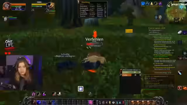 08:17:36Nachdem die Raidsituation geklärt ist, konzentriert sich die Streamerin auf das Questen. Sie erwähnt, dass man nur drei Versuche für die Streamer-Challenge hat, aber im WoW Hardcore ein Tod der Charakter bedeutet. Die Spieler beschließen, die Söldner-Quest in Loch Modan zu versuchen. Die Streamerin erwähnt ihre durch Tastatur-Muscle-Muscle Memory bedingten Gewohnheiten, wie z.B. dass der Kick-Befehl immer auf der Taste E liegt.