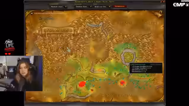 11:05:21Die Streamerin erreicht Seeheim, um eine Quest abzugeben, was sie erneut nach Westfall schicken wird. Sie überlegt die optimale Route für die weitere Questing-Session. Aufgrund der bevorstehenden Abwesenheit von Lena, die auf Rock am Ring sein wird, ist der Fokus darauf, die gemeinsame Spielzeit so effektiv wie möglich zu nutzen. Der Stream wird wahrscheinlich für den Rest der Zeit sehr ruhig sein, da die Streamerin hauptsächlich spielen und Musik läuft lassen wird.