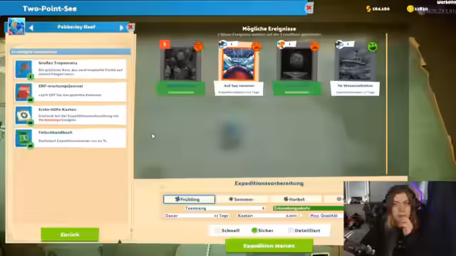 03:56:18Die Streamerin plant, das Museum zu erweitern und neue Exponate auszustellen, insbesondere Kaltwasserfischis. Sie erwähnt, dass sie Spenden erhalten hat und Marketing betreibt, um mehr Gäste anzuziehen. Sie wählt Personal für Expeditionen aus, darunter Schmixi, Dennis und John, um bessere Exponate zu beschaffen. Ein Kaltwasser-Aquarium soll in einer Ecke platziert und mit einem Wasserkühler versehen werden. Die Taube Tiefe wird freigeschaltet, und die Streamerin plant, diese zu besuchen, sobald sie die passenden Fische gefunden hat. Allgemeine Dekorationen wie Tafeln werden platziert, auch wenn noch nichts ausgestellt ist. Schmixi ist krank, aber Muschelhörner werden analysiert und in die Taube Tiefe gebracht. Dogger soll eine Überwachungskabine 2 erhalten, um die Ermittlungskompetenz zu erhöhen, und eine Kamera soll installiert werden. Abfalleimer werden platziert, und der Mobfisch wird in ein Aquarium gesetzt. Die Streamerin sammelt Spenden und wirbt für die Kampagne Nasslantiden, um mehr Besucher anzuziehen. Sie spricht über eine Wannendusche und findet diese ungemütlich. Ein Nigiri-Fisch wird entdeckt, und die Streamerin plant, einen weiteren zu besorgen, um die Begeisterung zu steigern. Die Begeisterungsboni sollen aktiviert werden, und eine islantische Ruine wird angepeilt. Ein Expeditionsdilemma mit Piraten taucht auf, und die Streamerin entscheidet sich, etwas über Bord zu werfen, verliert dadurch aber Geld.