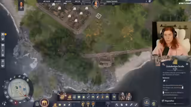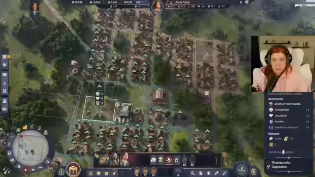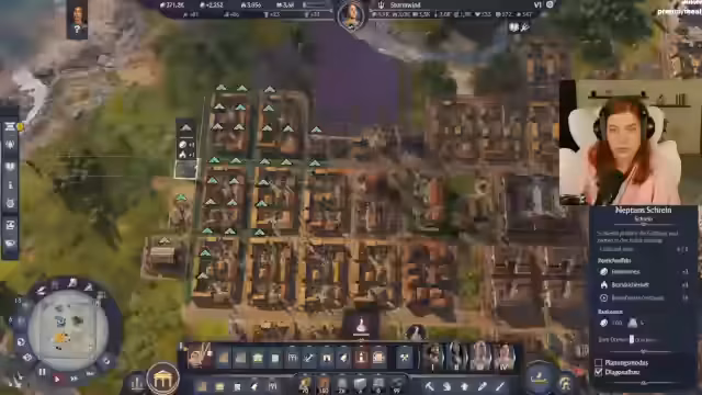 02:15:07Der Besuch des Prätors steht bevor, und die Produktion wird weiter optimiert. Die Streamerin betont ihren entspannten Spielstil in Anno, bei dem das Quatschen und Genießen des Spiels im Vordergrund steht, anstatt schnell voranzukommen. Ein Angebotsverlängerung für einen Nicht-Angriffspakt wird angenommen. Die lange Bauzeit des Mosaiks wird erwähnt, und die Streamerin gibt zu, dass sie sich manchmal gestresst fühlt, wenn sie angegriffen wird. Ein Blick auf Albion zeigt volle Warenlager, da dort aktuell nichts produziert wird. Ein Handelsabkommen wird mit einer Fraktion geschlossen, die zuvor ein Siedlungsverbot abgelehnt hatte. Die Überproduktion wird genutzt, um Lagerhäuser zu verbessern. Die Produktion von Hosen erfordert eine zweite Insel, weshalb grundlegende Güter dorthin transportiert werden sollen. Es wird über den Bau einer Werft auf der neuen Insel nachgedacht, aber stattdessen entschieden, zwei Handelsschiffe auf der Hauptinsel zu produzieren und diese dann zu schicken. Die Forschung wird auf Kriegsforschung und die Erhöhung der Reichweite von Wettkampfwiesen konzentriert. Halbe Baukosten für Ornamente werden als netter Bonus erwähnt. Holzfällerhütten werden auf der neuen Insel platziert, und es wird entschieden, zuerst Hosen zu produzieren. Eine kleine Siedlung wird auf der neuen Insel errichtet, um die Produktion von Schafwolle und Färberbaupflanzen zu ermöglichen. Die Hosenproduktion soll auf der Hauptinsel stattfinden, um Einkommen und Gesundheit zu steigern.