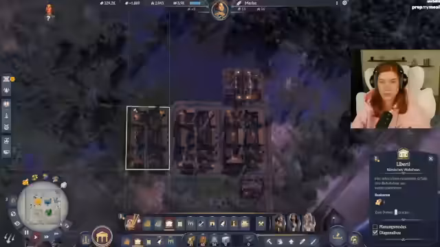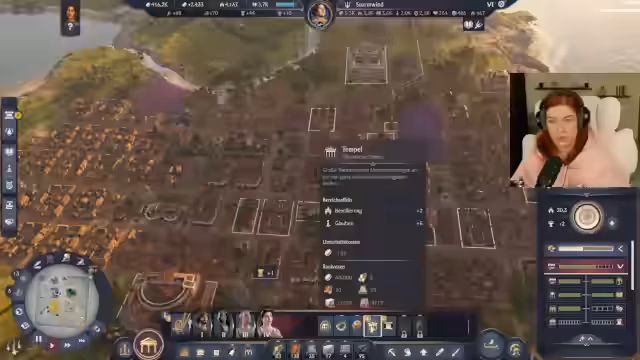 01:58:24Die Bevölkerung soll weiter aufsteigen, wofür weitere Gebäude wie eine Taberna benötigt werden. Die Streamerin vergisst kurzzeitig ihre Pläne, konzentriert sich dann aber auf den Bau einer Taberna, um die Bevölkerungszufriedenheit und das Einkommen zu steigern. Es wird über den Bau von Tuniken nachgedacht, um zusätzliche Einnahmen und Wissen zu generieren. Die Produktion von Mineralien wird vorbereitet, um Mosaik-Produktion auf einer anderen Insel zu ermöglichen. Ein Handelsschiff wird für den Transport von Farbstoffen und anderen Gütern in die Handelsroute integriert. Der Sonnenuntergang wird kurz bewundert, bevor die Streamerin feststellt, dass die Marmorproduktion erhöht werden muss, da der Ausbau der Häuser viel Marmor verbraucht. Die Möglichkeit, Anno 117 bereits zu spielen, wird als Streamer-Bonus erklärt, und es wird auf die Möglichkeit hingewiesen, Drops durch Zuschauen zu sammeln. Die Marmorproduktion wird tatsächlich erhöht, und es werden Neptun-Schreine gebaut, um die Brandsicherheit zu erhöhen. Es wird über die Bedeutung von Ansehen für den Bau von Offiziersgebäuden nachgedacht, was später im Spiel relevanter werden könnte. Der Mosaikmacher wird gebaut, und die Streamerin äußert ihre Begeisterung für die Detailverliebtheit des Spiels. Die Produktion von Austern und Kaviar läuft gut, und es wird über eine Erhöhung der Produktion nachgedacht.