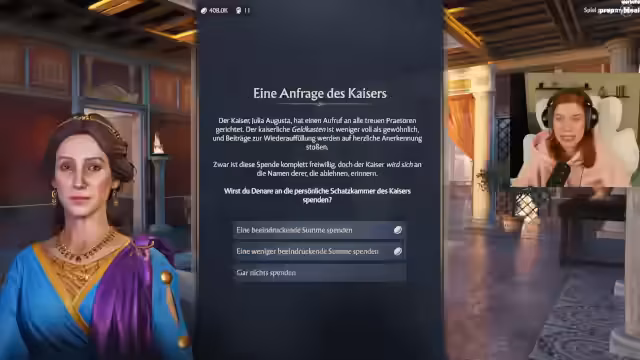 00:05:21Der Streamer wird mit verschiedenen Quests und Ereignissen konfrontiert, darunter Anfragen von NPCs und Entscheidungen, die den Ruf und die Zufriedenheit der Bevölkerung beeinflussen. Eine beeindruckende Summe von 35.000 Einheiten wird gespendet, um den Ruf beim Kaiser zu erhöhen, was als vorteilhaft für zukünftige Boni angesehen wird. Die Freischaltung der Göttin Minerva, die Tuniken- und Toga-Produktion beeinflusst, führt zu Überlegungen über den Wechsel des Götter-Einflusses. Trotz der Vorteile anderer Götter wird beschlossen, bei Neptun zu bleiben, um dessen bestehende Vorteile nicht zu verlieren. Ein Vorfall mit unzufriedenen Arbeitern, die ihren Willikus beschuldigen, wird durch eine Entschädigung von 5000 Einheiten gelöst, um die Zufriedenheit der Liberty zu gewährleisten und ein Exempel gegen Misshandlung zu statuieren.
