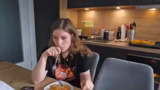 02:56:55Die Streamerin holt die fertige Lasagne aus dem Ofen und präsentiert sie der Kamera. Sie ist vom Aussehen begeistert, besonders vom leicht angebräunten Käse. Beim Anschneiden stellt sie fest, dass die Lasagne durch viel Sauce etwas matschig ist, betont aber, dass der Geschmack dennoch hervorragend ist. Sie erwähnt, dass sie noch Sahne hinzugefügt hat, da ursprünglich zu wenig Sauce vorhanden war, und dass dies den Geschmack nicht negativ beeinflusst hat.