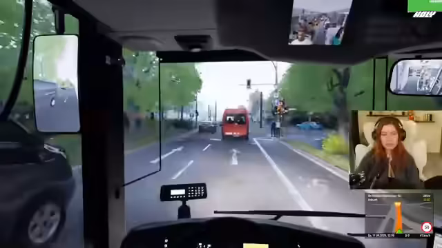 02:18:20Während der Fahrt durch die simulierte Berliner Innenstadt gerät die Streamerin in zunehmende Verwirrung und Chaos. Sie hält an Ampeln, wo die Türen automatisch öffnen, ignoriert dies zunächst, da sie es nicht deaktivieren kann. Sie überfährt eine Busspur, bremst zu spät und muss mit einem Unfall rechnen. Das Navigationsystem scheint zu versagen und führt sie in unklare Situationen. Ihr Fahrstil ist unsicher, sie übersieht Geschwindigkeitsbegrenzungen und versucht verzweifelt, den Weg zum eigentlichen Ziel der Tour zu finden, während sie ständig durch spielinterne Ereignisse abgelenkt wird.