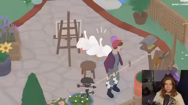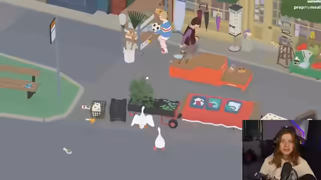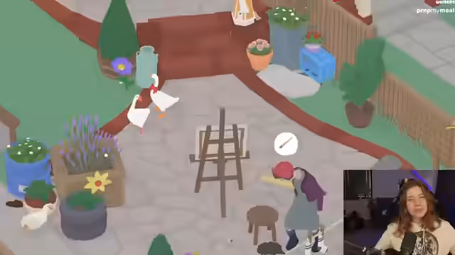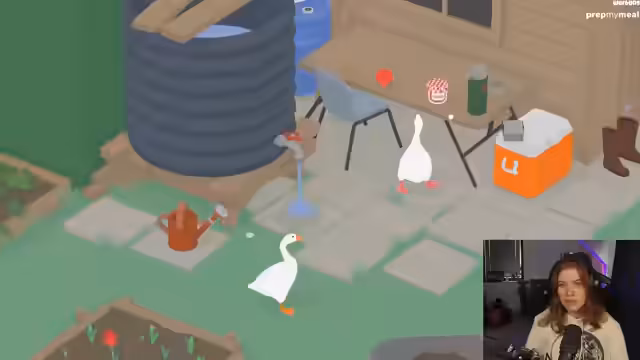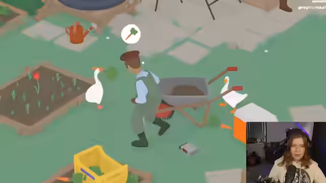 01:01:18Im weiteren Verlauf des Goose Game gelingt es den Streamerinnen, den Gärtner dazu zu bringen, seinen Sonnenhut zu tragen und das Picknick zu vervollständigen. Anschließend werfen sie den Rechen in den Teich. Es kommt zu einer Diskussion darüber, ob ihr Verhalten im Spiel eher Mobbing als harmloser Unfug ist. Trotzdem setzen sie ihre Streiche fort und versuchen, den Gärtner erneut nass zu machen. Sie erkennen, dass sie den Schlüssel des Gärtners wieder benötigen, um weitere Aktionen durchführen zu können. Die Streamerinnen planen, dem Gärtner seinen Sonnenhut zu stehlen, sobald er ihn absetzt, um sich den Schweiß abzuwischen. Sie entwickeln eine Strategie, um ihn abzulenken und ihm den Hut aus der Hand zu klauen. Währenddessen kommentieren sie humorvoll die Aktionen im Spiel und die Reaktionen des Gärtners.