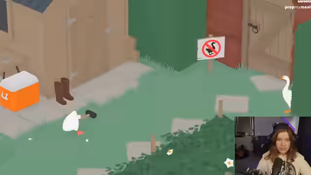 00:41:32Das Goose Game beginnt mit Chaos und Erkundung. Die Gänse versuchen, sich im Spiel zurechtzufinden und die Steuerung zu erlernen. Es wird festgestellt, dass man sich bücken und Dinge schnappen kann. Die erste Aufgabe besteht darin, Stiefel mitzunehmen. Die Gänse finden einen Weg und entdecken ein Sandwich, das sie gerne hätten. Sie überlegen, ob sie es den Enten zum Füttern geben sollen. Es wird ein Garten entdeckt, in dem ein Gärtner arbeitet. Die Gänse finden eine Aufgabenliste, die es abzuarbeiten gilt: Den Gärtner nass machen, ihm seinen Schlüssel klauen, ihn dazu bringen, seinen Sonnenhut zu tragen, einen Rechen in den Teich werfen und ein Picknick veranstalten. Die Streamerinnen beschließen, zuerst den Gärtner nass zu machen und ihm dann den Schlüssel zu stehlen. Sie entwickeln einen Plan, um den Gärtner abzulenken und ihn mit einer Möhre anzulocken.