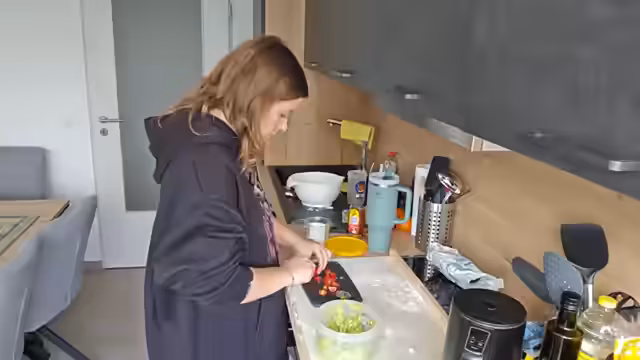 01:20:15Während die Brötchen im Ofen backen, widmet sich die Streamerin der Zubereitung des Avocado-Dips. Sie zerdrückt die Avocados, mischt Patros, Tomaten und Hafermilch unter und würzt das Ganze mit Pfeffer. Sie äußert ihre große Vorfreude auf das gemeinsame Frühstück, das den Stream abschließen soll. In diesem Kontext spricht sie auch über persönliche Vorlieben beim Essen und teilt Anekdoten aus ihrem Alltag, wie den Versuch, eine Avocado aus dem Kern zu züchten.