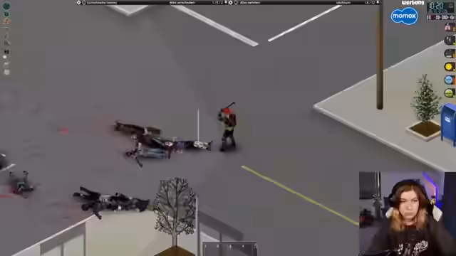 04:33:43Die Streamerin kämpft sich durch eine große Zombie-Horde, die sie zur Tankstelle gelockt hat. Sie muss taktisch vorgehen, um nicht umzingelt zu werden, und flieht schließlich mit dem Auto. Sie zeigt Frustration über die große Anzahl von Zombies und erwähnt, dass sie eine bessere Waffe wie ein Katana bräuchte. Sie beruhigt sich kurz und plant ihren nächsten Zug.
