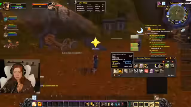 05:15:52Während des Streams plant die Streamerin eine Essenspause, da sie Hunger hat und die Session noch etwa eine Stunde dauern wird. Sie erwähnt, dass sie rote Beete mit Fetakäse zubereiten wird. Gleichzeitig werden Quests in Goldhain abgeschlossen, Inventar geprüft und überlegt, ob ein brauner Lederranzen gekauft werden soll. Geld wird als Mangelware bezeichnet, weshalb Ressourcen lieber für spätere Handwerksprojekte aufgehoben werden.