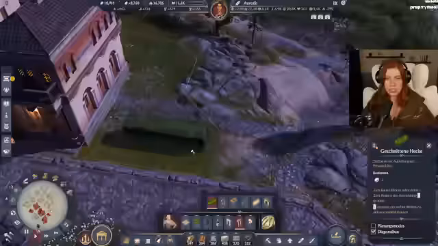 00:08:05Der Stream beginnt mit der Gestaltung eines repräsentativen Gartens in Anno 117. Es werden verschiedene Dekorationselemente wie Ornamente, Statuen und Wasserkanäle diskutiert und platziert. Die Herausforderung liegt darin, den verfügbaren Raum optimal zu nutzen und ästhetische Wege zu schaffen, während gleichzeitig die Platzierung von Bäumen und Sträuchern für eine harmonische Atmosphäre sorgt. Dabei werden auch praktische Aspekte wie die Breite von Wegen und die Sichtbarkeit von Dekorationselementen vor Gebäuden berücksichtigt, um eine ausgewogene Stadtbildgestaltung zu erreichen.