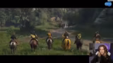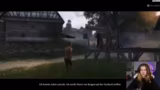 01:49:54Nachdem die Gruppe einen Fluss durchquert hat und sich nicht gekleidet hat, gerät sie in eine heikle Situation. Die Männer werden verdächtigt, Frauen belästigt zu haben, und werden nun von der Dorfbevölkerung verfolgt. Das Spiel zeigt dem Spieler ein neues Gameplay-Element: den 'Hasen'-Status, der verschiedene Stufen der Verfolgung durch die Dorfbevölkerung anzeigt. Die Gruppe muss fliehen und ist nun 'gesucht'.