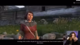 00:53:00Die erste Hauptaufgabe besteht darin, einen Brief an Herrn von Bergo zu überbringen. Unterwegs begegnet die Gruppe einem Mann namens Hans, der an einem Würfelspiel teilnimmt. Obwohl es um das Hundefutter für den Hund der Gruppe geht, wird der Hundebesitzer abweisend. Die Streamerin versucht, das Glücksspiel zu verstehen, was zu einer lange anhaltenden und frustrierenden Sequenz führt, in der sie mehrmals gegen Hans verliert und das Spielprinzip erst langsam begreift.