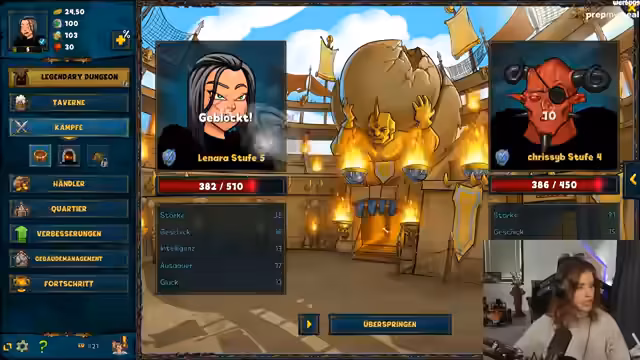 03:20:50Nachdem der Hauptteil des Bastelprojekts im Stream abgeschlossen ist, wechselt die Streamerin zum Browser-Shake & Fidget. Sie begrüßt ihre Zuschauer und erklärt, dass sie mit einem Charakter spielen wird, der noch nicht Level 50 erreicht hat, weshalb sie am aktuellen "Legendary Dungeon Event" nicht teilnehmen kann. Stattdessen will sie mit der Charakterentwicklung und der Verteidigung der Festung fortfahren.
