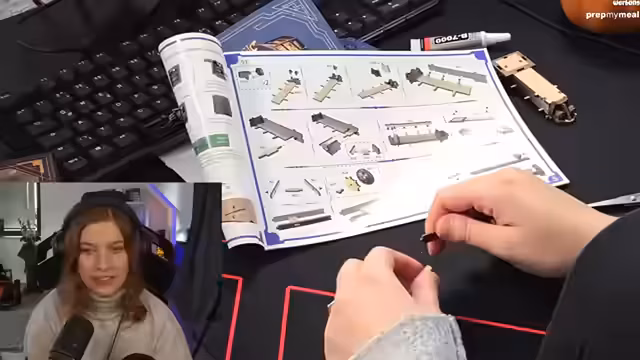 03:08:08Nach anfänglichen Schwierigkeiten beim Zusammenbau des Booknook, insbesondere mit dem Umgang mit den Bauteilen D7 bis D9, konzentriert sich die Streamerin auf das Zusammensetzen der Hauptkomponenten. Nachdem sie die Teile falsch herum platziert hatte, korrigiert sie ihre Fehler und versucht, Immersion durch eine versetzte Anordnung zu erzeugen. Sie beschreibt den Prozess als teils "frierige Angelegenheit" und notiert, dass die Schultern schmerzen. Die elektrischen Komponenten, die noch eingebaut werden müssen, werden auf den nächsten Stream verschoben.
