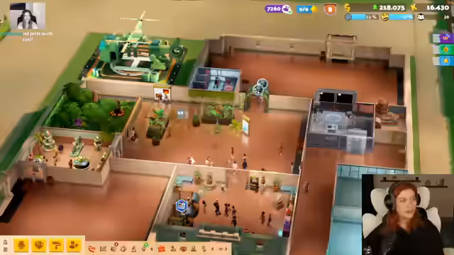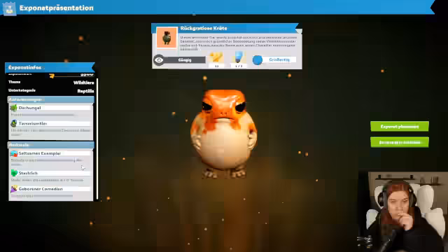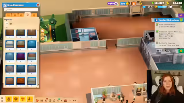 02:16:24Im neuen DLC "Zoo" von Two Point Hospital beginnt die Streamerin mit dem Aufbau eines Zoos. Sie liest die Einführungsstory und nimmt den Hilferuf des Charakters Wickbert Silverbottom an. Das erste Personal, darunter Hausmeister und Sicherheitskräfte, wird eingestellt. Die Streamerin richtet ein Personalzimmer gemütlich ein und plant, als Erstes ein kleines Terrarium zu bauen, um die ersten Tiere willkommen zu heißen.