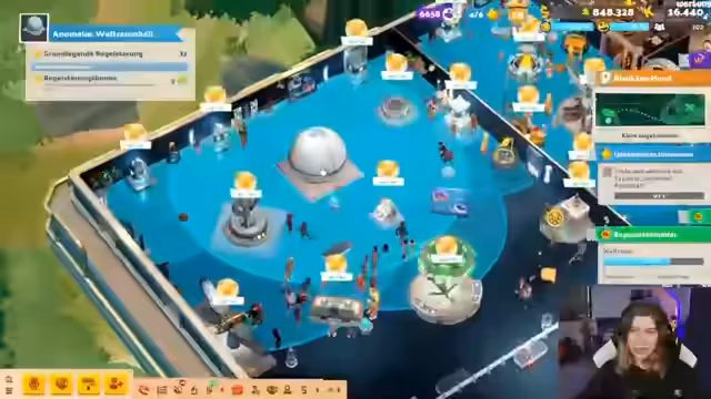 01:08:37Im Museum wird mit dem Wiederaufbau der Exponate und dem Einstellen von neuem Personal begonnen. Die Streamerin ruft den Chat auf, sich als neue Mitarbeiter zu bewerben. Es wird über die Charaktereigenschaften der Kandidaten gesprochen und einige werden direkt eingestellt. Der Fokus liegt auf der Verbesserung der Museum-Bewertung und der Behebung von Problemen wie dem Helikopterschaden.