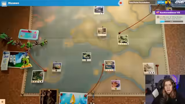 00:51:17Nachdem technische Vorbereitungen wie das Deaktivieren der Beta und das Herstellen einer Internetverbindung abgeschlossen sind, wird das Spiel Two Point Museum gestartet. Zuletzt waren die Peberley Heights im Spiel, wo das Ziel ist, fünf Sterne zu erreichen. Die Mitarbeiter müssen wieder eingestellt und auf Expeditionen geschickt werden.