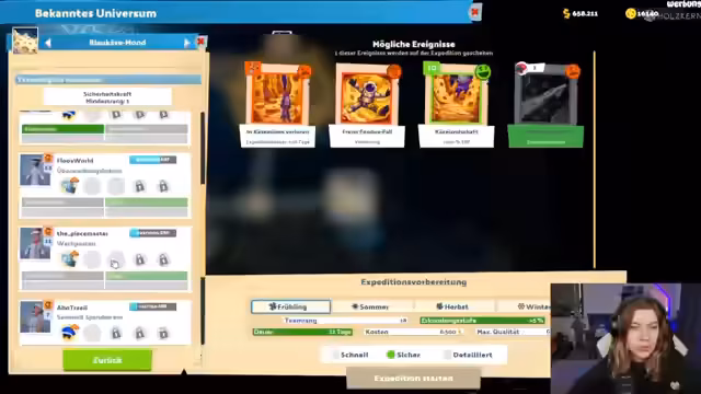 01:39:22Während die Expeditionen fortgesetzt werden, stellt der Streamer fest, dass mehrere Teammitglieder krank geworden sind. Dies führt zu der Überlegung, die Mitarbeiter zunächst zu heilen, bevor sie erneut auf Mission geschickt werden. Nach der Genesung muss die Besetzung der Expeditionsteams neu strukturiert werden. Es werden verschiedene Mitarbeiter auf deren Eignung für die Missionen überprüft, um eine optimale Teamzusammensetzung zu finden, die die Erfolgschancen maximiert und negative Ereignisse minimiert.
