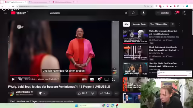 00:05:37Frankreich hat Palästina als Staat anerkannt, was in Europa eine ähnliche Durchschlagskraft wie Deutschland hat, auch wenn Frankreich nicht die gleiche enge Beziehung zu Israel pflegt. Die Anerkennung wird als möglicher Grundstein für eine Zwei-Staaten-Lösung gesehen, die jedoch als unrealistisch eingeschätzt wird. Es wird betont, dass es für Israel immer schwieriger wird, die Besetzung palästinensischer Gebiete zu rechtfertigen, da immer mehr Staaten Palästina anerkennen. Die Streamerin äußert die Hoffnung auf Druck aus Europa und der Bevölkerung auf Deutschland, da sie in der deutschen Politik wenig Hoffnung in dieser Frage sieht. Ein Interview mit Merz wird ausgeschlossen, da dieser kein Interesse an der Zielgruppe des Streams habe. Allerdings wird ein Stream mit einem CDU-Politiker im Oktober angekündigt, einem alten Bekannten, der bereits im Stream zu sehen war.