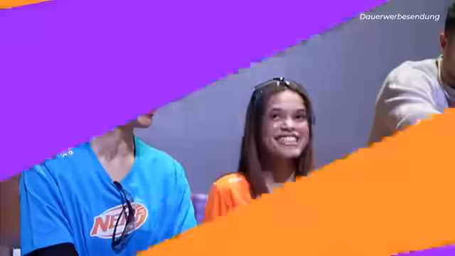 01:49:59Die zweite Runde der Blaster Arena beginnt mit Paul und Selma für Team Blau gegen Mia und Phil für Team Orange. Der Punktestand beträgt 1:0 für Team Blau. Paul Frege geht von Anfang an volles Risiko. Es kommt zu einer kontroversen Situation, als Paul Phil trifft, aber Phil behauptet, Paul ebenfalls getroffen zu haben. Nach einer Überprüfung der Wiederholung stellt sich heraus, dass Paul Phil nicht getroffen hat und zudem die Mittellinie überschritten hat. Diese Regelverstöße führen dazu, dass der Punkt Team Orange zugesprochen wird. Damit steht es 1:1, und ein entscheidendes Stechen wird notwendig, um den Sieger der Challenge zu ermitteln. Die Diskussionen über die strittige Szene und die Einhaltung der Regeln zeigen die hohe Wettbewerbsintensität und den Ehrgeiz der Teilnehmer. Die Entscheidung, den Punkt Team Orange zu geben, sorgt für eine dramatische Wendung und hält die Spannung für das finale Stechen aufrecht, das über den Ausgang der Blaster Arena Challenge entscheiden wird.