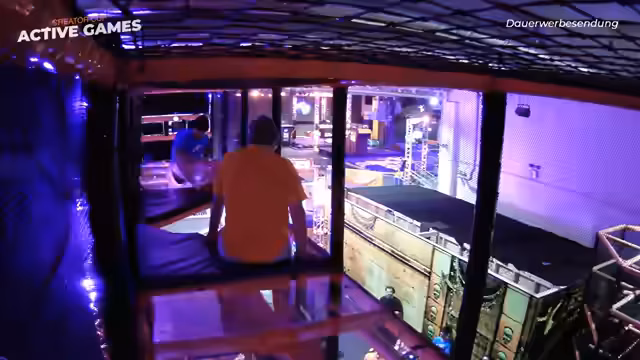 02:04:23Die nächste Challenge, der Ball-Pit-Blitz, wird vorgestellt. In einem großen Bällebad sind Blasterteile versteckt, die auf einem weißen Quadrat am Boden zusammengebaut werden müssen, um funktionsfähig zu sein. Jedes Team muss eine Person bestimmen, die im Bällebad nach Teilen sucht, und eine andere Person, die die gefundenen Teile zusammenbaut. Es müssen alle fünf versteckten Teile gefunden und korrekt montiert werden. Die Teams, angeführt von Adi und Paul, müssen sich schnell über ihre Strategie einigen und entscheiden, wer welche Rolle übernimmt. Die Bälle im Pit sind überraschend schwer und erschweren die Suche erheblich. Es darf immer nur eine Person im Bällebad suchen und jeweils nur ein Teil herausbringen. Die anderen Teammitglieder dürfen von außen Tipps geben. Team Orange, das in Führung liegt, beginnt die Challenge. Phil von Team Orange demonstriert beeindruckende Geschwindigkeit und Kraft, indem er die schweren Bälle beiseite wirft. Er findet die Teile und baut den Blaster in nur 43 Sekunden zusammen. Team Blau muss diese Zeit unterbieten. Kahn von Team Blau versucht es mit Finesse und Akrobatik, aber trotz seiner Schnelligkeit verfehlt Team Blau die Bestzeit von Team Orange um drei Sekunden. Somit gehen weitere vier Punkte an Team Orange, die ihre Führung weiter ausbauen. Die Spannung steigt, da nur noch das große Finale aussteht, bei dem acht Punkte vergeben werden.