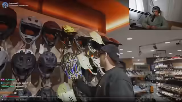 00:21:22Der Streamer zeigt seinen neuen Helm, der für einen Mountainbike-Stream gestern gekauft wurde. Er analysiert anschließend den gestrigen Stream, der als 'bodenlose Nummer' beschrieben wird, bei der er besonders einen misslungenen Sprung analysiert, bei dem er mit dem Kopf aufprallte. Er erklärt dabei detailliert, wie das Schleudertrauma entstand, das durch den ruckartigen Aufprall auf den Kopf verursacht wurde und zu kleinen Rissen in der Nackenmuskulatur führte. Der Vorgang wurde von der Kamera festgehalten und im Stream gezeigt.
