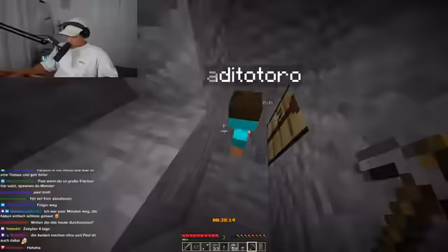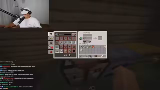 03:15:53Die Erkundung von Höhlen wird zur lebensgefährlichen Herausforderung. Niki gerät in eine schwierige Situation, aus der er von den anderen gerettet werden muss. Die Gruppe stellt fest, dass das Springen auf spitzen Steine Schaden verursacht und Fackeln in den Minen unerlässlich sind, um Monster zu verhindern. Die Chat-Community hilft aktiv, indem sie Crafting-Rezepte erklärt und Ressourcenorte für seltene Items wie Oxeye-Daisys für Heilsuppen nennt, die neben den Goldenen Äpfeln die einzige Möglichkeit sind, im Ultra-Hardcore-Modus Lebenspunkte wiederherzustellen.