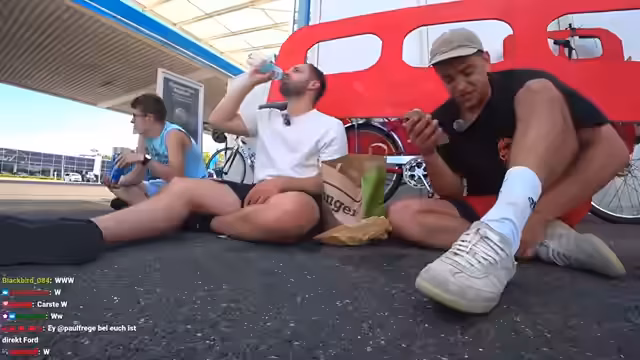 03:29:54Die Tour beginnt mit dem Ziel, von Köln nach Düsseldorf zu kommen, wobei die Streamer betonen, dass sie auf eine hohe Stufe und Qualität achten. Sie sind mit einem schweren Tandem Fahrrad unterwegs, das Gewicht schmerzt, und die körperliche Anstrengung lässt sie schnell an ihre Grenzen stoßen. Die erste größte Herausforderung ist der Nahrungsmangel, da sie seit Stunden nichts essen oder trinken konnten, was zu Erschöpfung, Blutzuckerschwankungen und Unkonzentriertheit führt. Das Gefühl, komplett am Limit zu sein, dominiert die erste Phase der Fahrt.