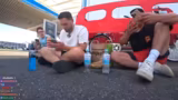 03:28:15Auf dem Weg zum Hafen werden sie von der Polizei angehalten, die Kontrolle verläuft jedoch reibungslos und freundlich. Die Streamer bleiben dabei stabil und sympathisch. Der Stream endet mit der Ankunft am Zielort, der Red Bull-Location in Düsseldorf. Die Teilnehmer äußern ihre Erleichterung und danken dem Chat für die Unterstützung. Das Vorhaben, einen London-Bus-Tandem von Köln nach Düsseldorf zu fahren, wurde erfolgreich abgeschlossen.